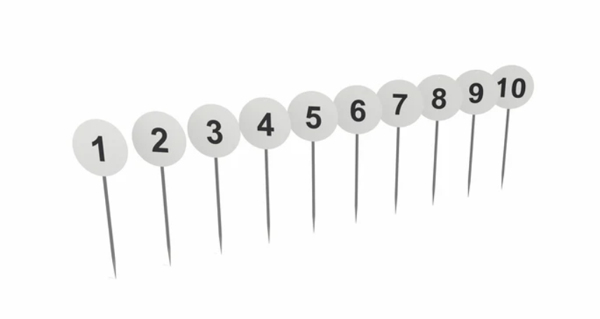 10 osaline heitemärkide komplekt.