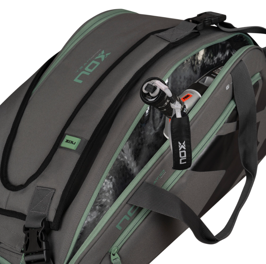 • Mahukas põhisahtel kahe lukuga, mis tagab lihtsa ligipääsu ja mahutab kuni 3 padeli reketit, riideid ja muud varustust