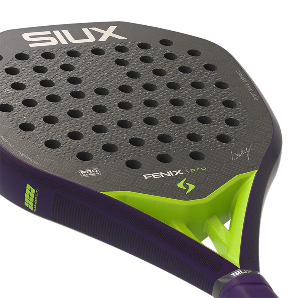 SIUX FENIX PRO 2026 GLOW PURPLE on professionaalse taseme padelireket edasijõudnud ja võistlusmängijatele, kes otsivad maksimaalset jõudlust ja ründevõimsust. Reket on varustatud maksimaalse kõvadusega EVA Hard südamikuga ning vastupidava 12K süsinikkiust (Carbon 12K Honeycomb) konstruktsiooniga, mis tagab plahvatusliku löögivastuse igas olukorras.