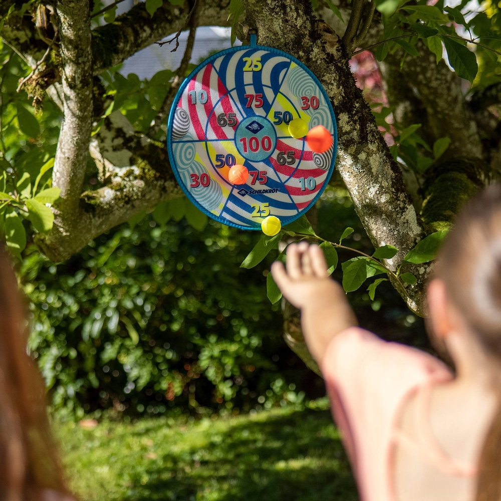 Pehme noolemängukomplekt, mis koosneb mõlemalt poolt erinevate sihtmärkidega takjapaelaga noolemängulauast (läbimõõt 38 cm)