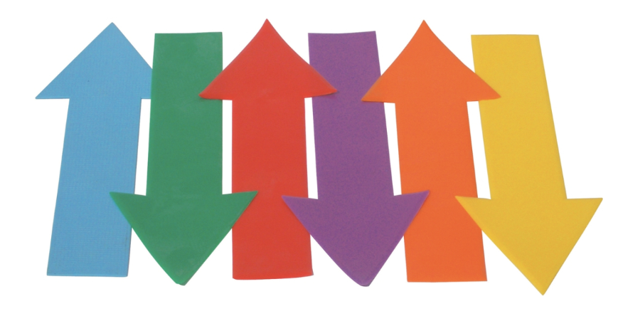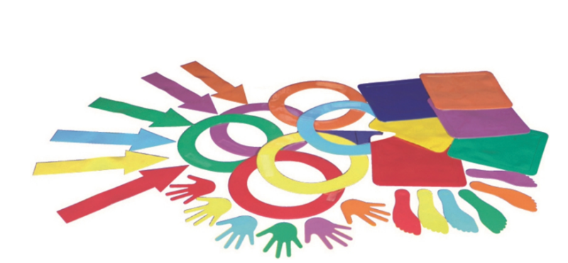 Valik libisemiskindlaid PVC-põrandamärgiseid, mis on mõeldud seismiskohtade märkimiseks, sihtmärgina viskamiseks või suuna andmiseks. Komplekt sisaldab 6 tk igat elementi: nooled, rõngad, alused, käed ja jalad.