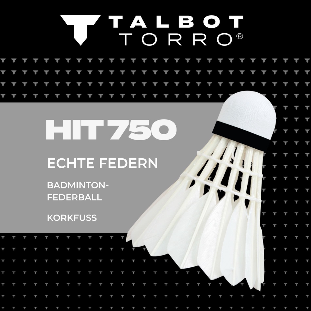 HIT 750 on Talbot-Torro sulgpallide klassika ning pakub vägahead kvaliteedi ja hinna suhet. Võrreldes nailonist sulgedega on päris looduslike sulgpallidega mängimise tunne palju loomulikum ja elavam ning veenvad ka üldised lennuomadused. HIT 750 sobib nii meelelahutuslikuks kasutamiseks kui ka treeninguteks klubide jaoks, muutes selle ideaalseks valikuks kõigile, kes soovivad mängida/treenida ehtsa naturaalsetest sulgedest valmistatud palliga, ilma et tahaks kohe varandust kulutada. Ruumi säästmiseks ja kaitsmiseks saab palle hoida praktilises 6-osalises purgis.